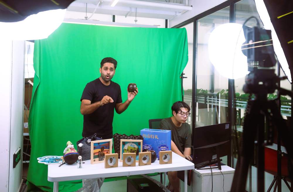 2025年9月22日,在??趶?fù)興城互聯(lián)網(wǎng)信息產(chǎn)業(yè)園,一名來自巴基斯坦的主播在直播間進(jìn)行直播帶貨。新華社記者 鄭悅 攝