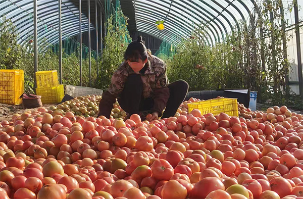 令人稱奇的是,基地在西紅柿種植中施用的是發酵后的玉米和黃豆,并定期向葉面與果實噴灑牛奶。“把玉米和黃豆發酵之后施給西紅柿,還定期給西紅柿噴灑咱大家喝的牛奶。噴了之后,增加了微量元素,西紅柿果面比較亮,所以西紅柿品質、口感特別好。”張平說,“這種方式種出的西紅柿不僅產量高,而且果色紅艷、飽滿多汁。咱這西紅柿現在都發到上海去了,一個大棚一年就收入25萬元。”